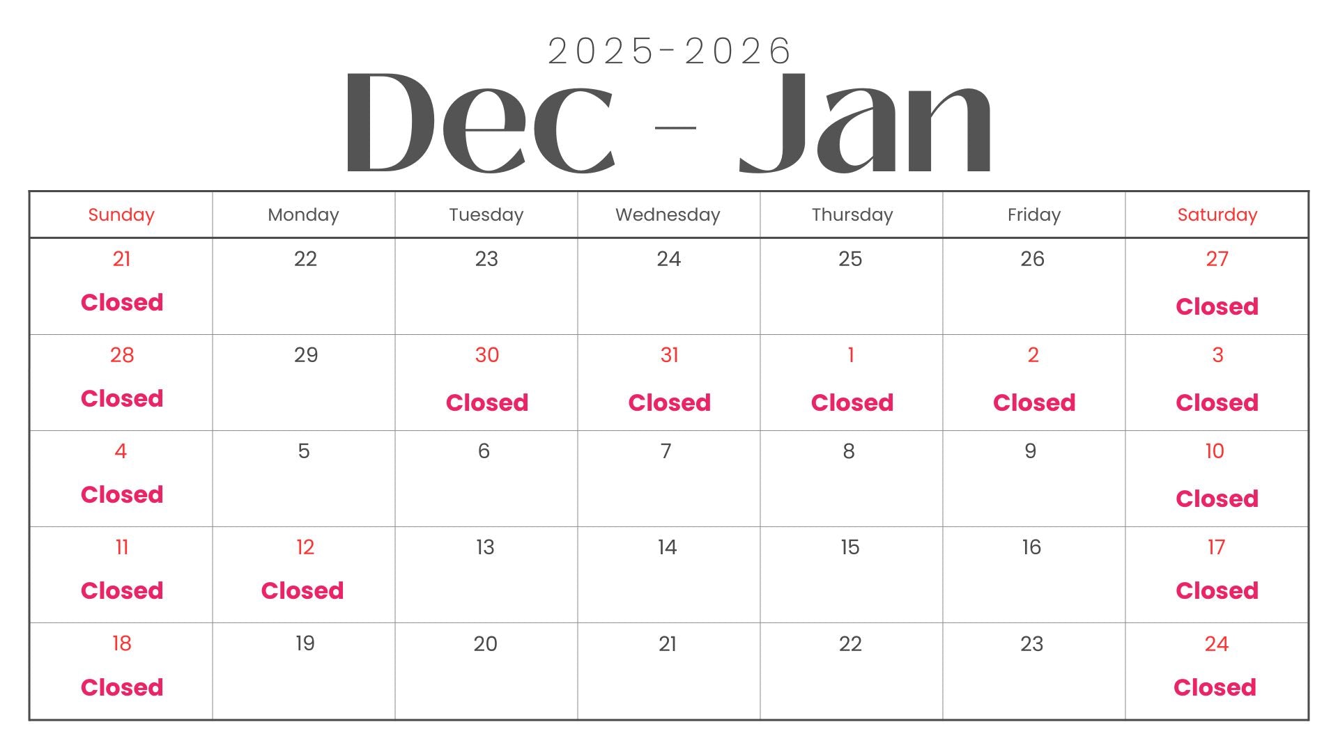 【年末年始休業日についてのご案内】